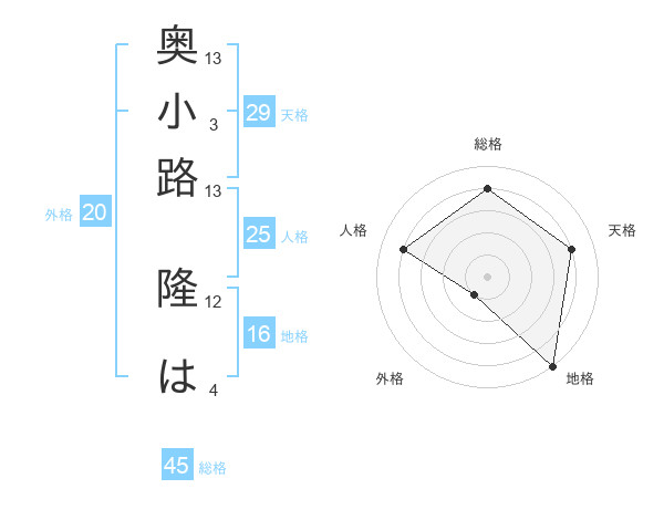奥小路 隆はさんを姓名の画数から五運を鑑定