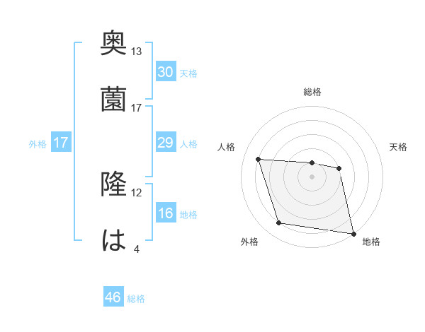 奥薗 隆はさんを姓名の画数から五運を鑑定