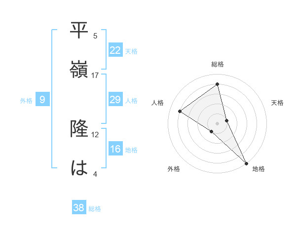 平嶺 隆はさんを姓名の画数から五運を鑑定