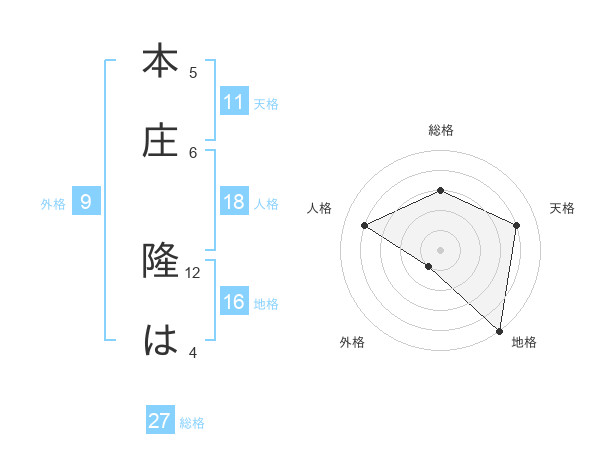 本庄 隆はさんの天格は11画の4点!