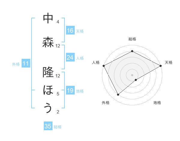中森 隆ほうさんを姓名の画数から五運を鑑定