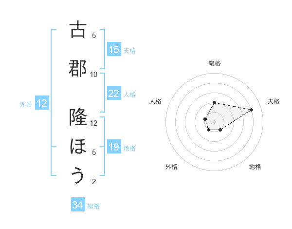 古郡 隆ほうさんを姓名の画数から五運を鑑定