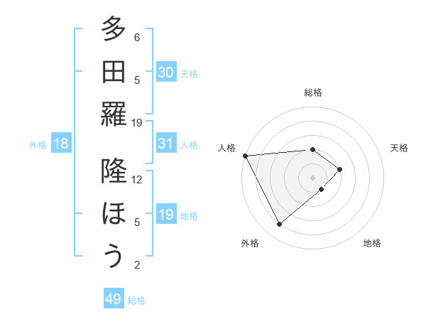 多田羅 隆ほうさんを姓名の画数から五運を鑑定