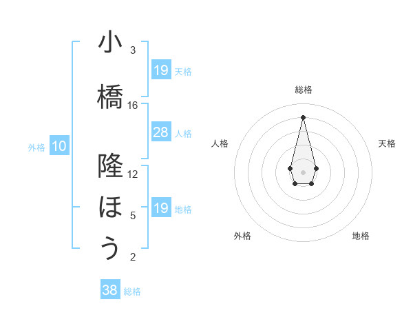 小橋 隆ほうさんの総格は38画の4点!