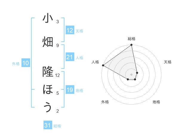 小畑 隆ほうさんの総格は31画の5点!