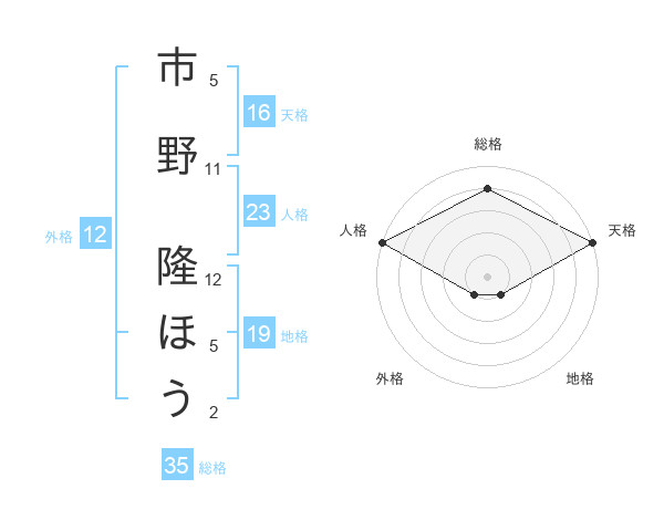 市野 隆ほうさんを姓名の画数から五運を鑑定
