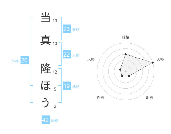 当真 隆ほうさんを姓名の画数から五運を鑑定