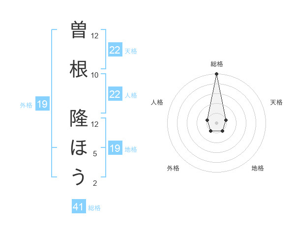 曽根 隆ほうさんの総格は41画の5点!