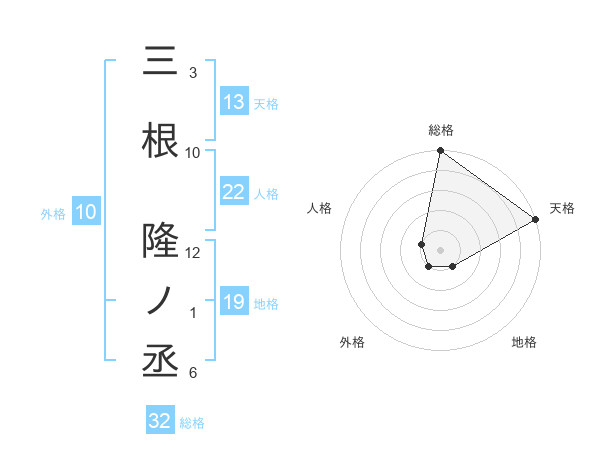 三根 隆ノ丞さんを姓名の画数から五運を鑑定
