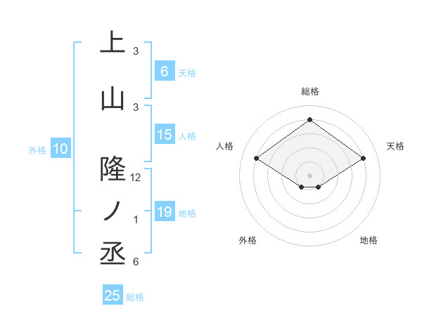 上山 隆ノ丞さんを姓名の画数から五運を鑑定