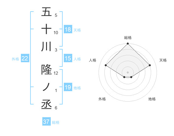 五十川 隆ノ丞さんを姓名の画数から五運を鑑定