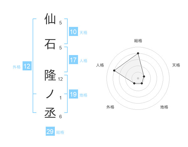 仙石 隆ノ丞さんを姓名の画数から五運を鑑定