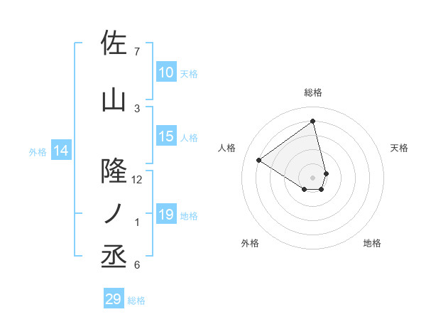 佐山 隆ノ丞さんの地格は19画の1点!