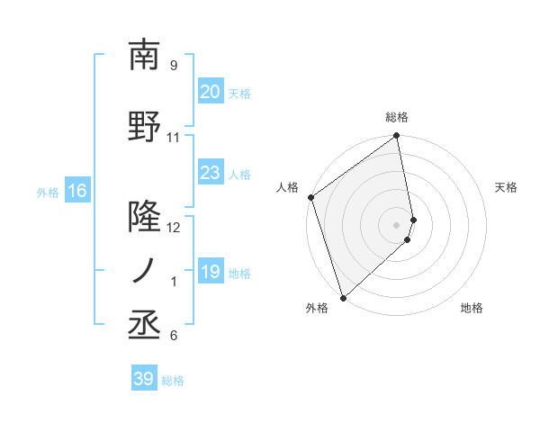 南野 隆ノ丞さんを姓名の画数から五運を鑑定