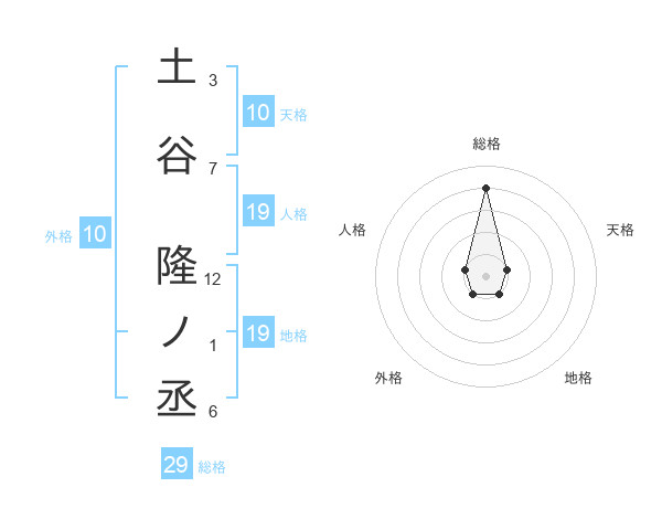 土谷 隆ノ丞さんを姓名の画数から五運を鑑定