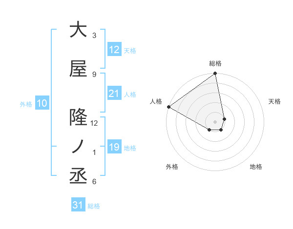 大屋 隆ノ丞さんを姓名の画数から五運を鑑定