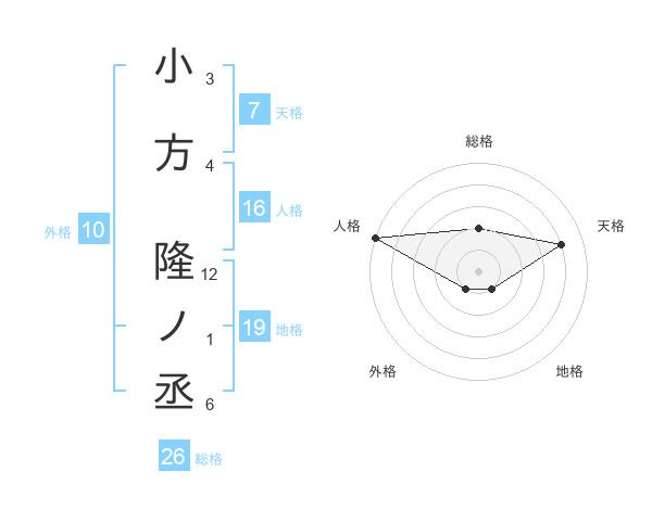 小方 隆ノ丞さんを姓名の画数から五運を鑑定