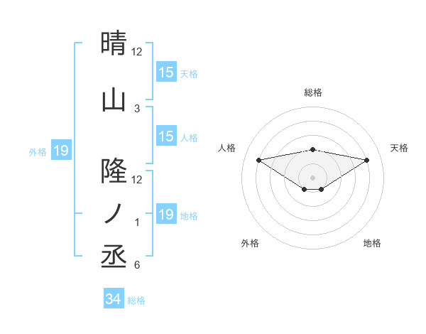 晴山 隆ノ丞さんを姓名の画数から五運を鑑定