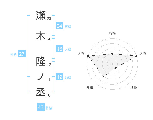 瀬木 隆ノ丞さんの天格は24画の5点!
