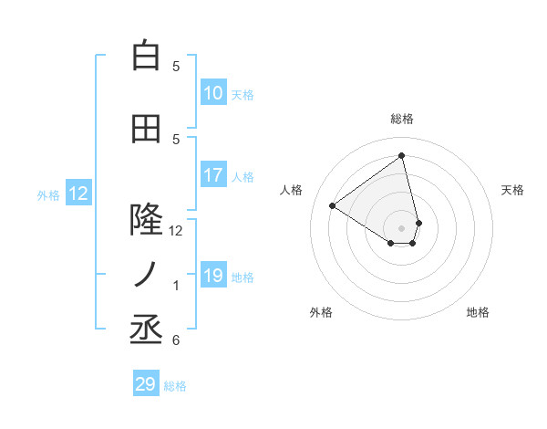 白田 隆ノ丞さんを姓名の画数から五運を鑑定