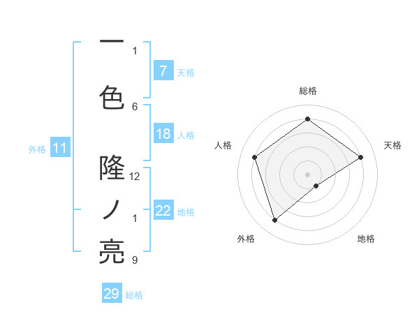 一色 隆ノ亮さんを姓名の画数から五運を鑑定