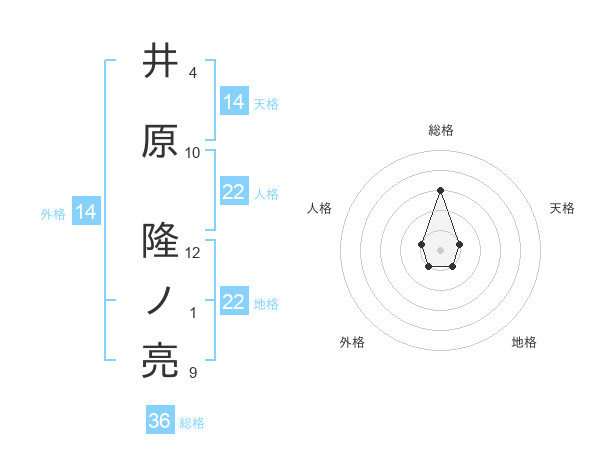 井原 隆ノ亮さんを姓名の画数から五運を鑑定