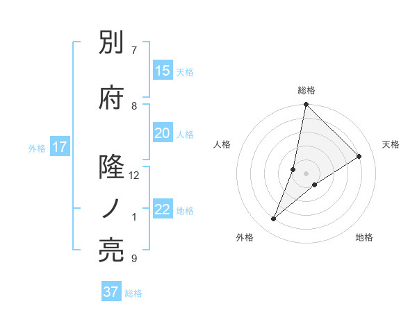 別府 隆ノ亮さんを姓名の画数から五運を鑑定
