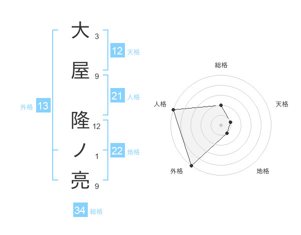 大屋 隆ノ亮さんを姓名の画数から五運を鑑定
