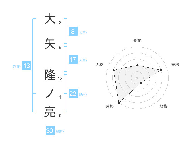 大矢 隆ノ亮さんの外格は13画の5点!