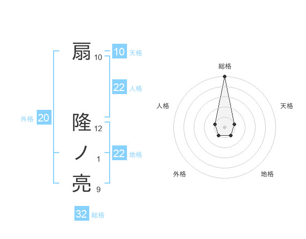 扇 隆ノ亮さんを姓名の画数から五運を鑑定