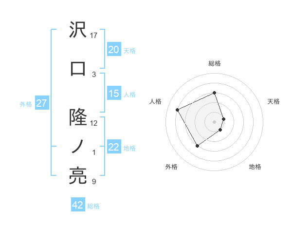 沢口 隆ノ亮さんを姓名の画数から五運を鑑定