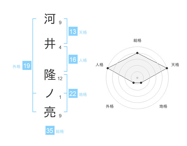 河井 隆ノ亮さんを姓名の画数から五運を鑑定