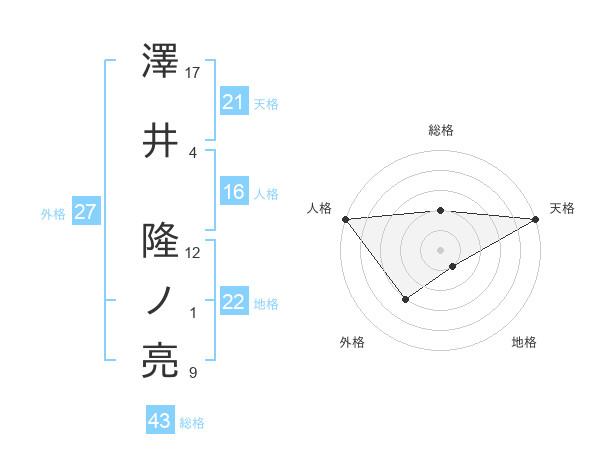 澤井 隆ノ亮さんを姓名の画数から五運を鑑定