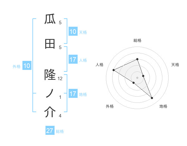 瓜田 隆ノ介さんの地格は17画の4点!