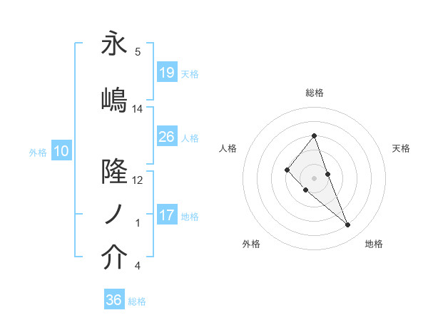 永嶋 隆ノ介さんを姓名の画数から五運を鑑定