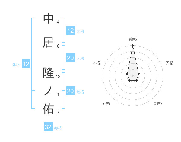 中居 隆ノ佑さんを姓名の画数から五運を鑑定