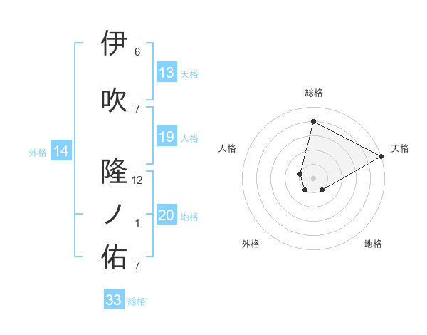 伊吹 隆ノ佑さんの天格は13画の5点!