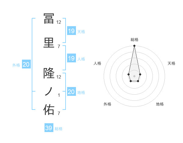 冨里 隆ノ佑さんを姓名の画数から五運を鑑定