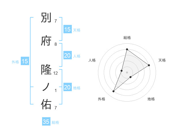 別府 隆ノ佑さんを姓名の画数から五運を鑑定