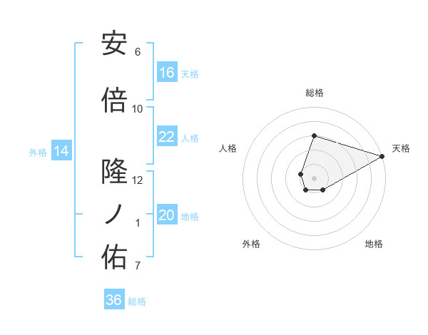 安倍 隆ノ佑さんを姓名の画数から五運を鑑定