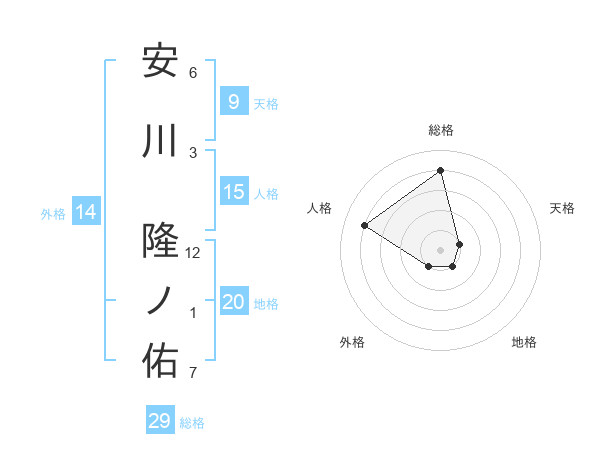 安川 隆ノ佑さんの総格は29画の4点!