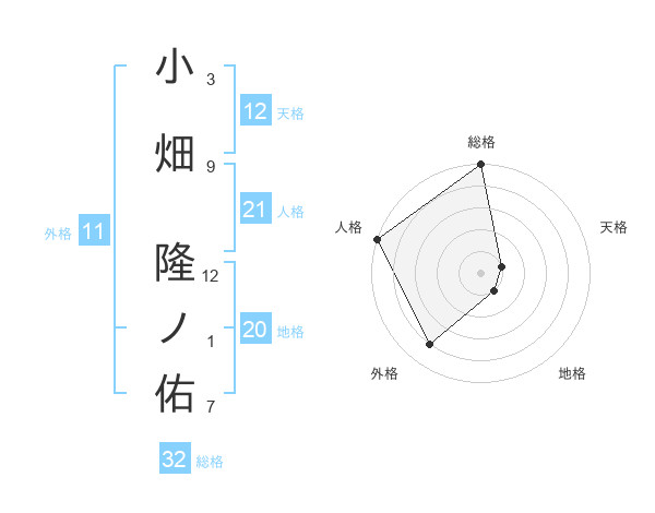 小畑 隆ノ佑さんを姓名の画数から五運を鑑定