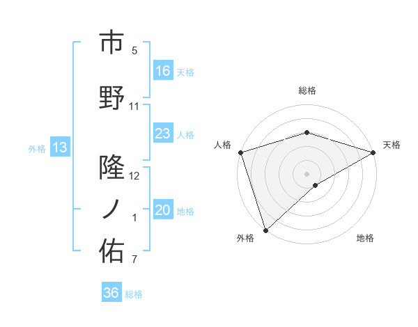 市野 隆ノ佑さんを姓名の画数から五運を鑑定