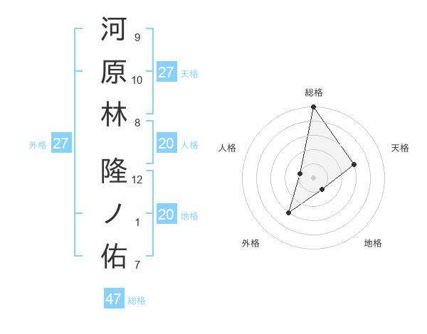 河原林 隆ノ佑さんを姓名の画数から五運を鑑定