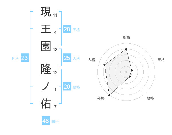 現王園 隆ノ佑さんの外格は23画の5点!