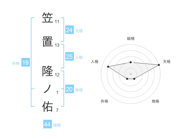 笠置 隆ノ佑さんを姓名の画数から五運を鑑定