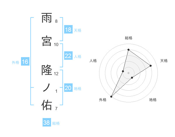 雨宮 隆ノ佑さんを姓名の画数から五運を鑑定
