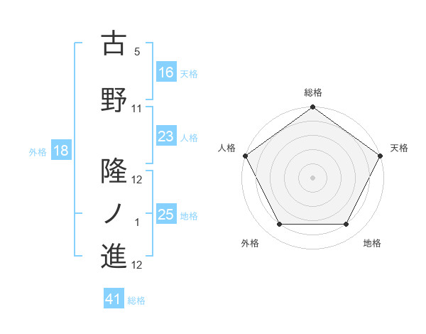 古野 隆ノ進さんを姓名の画数から五運を鑑定