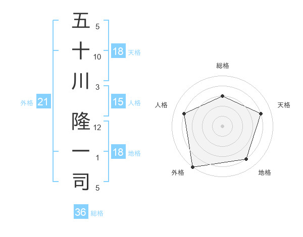 五十川 隆一司さんを姓名の画数から五運を鑑定