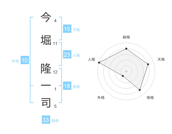 今堀 隆一司さんの総格は33画の4点!